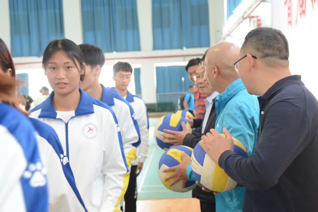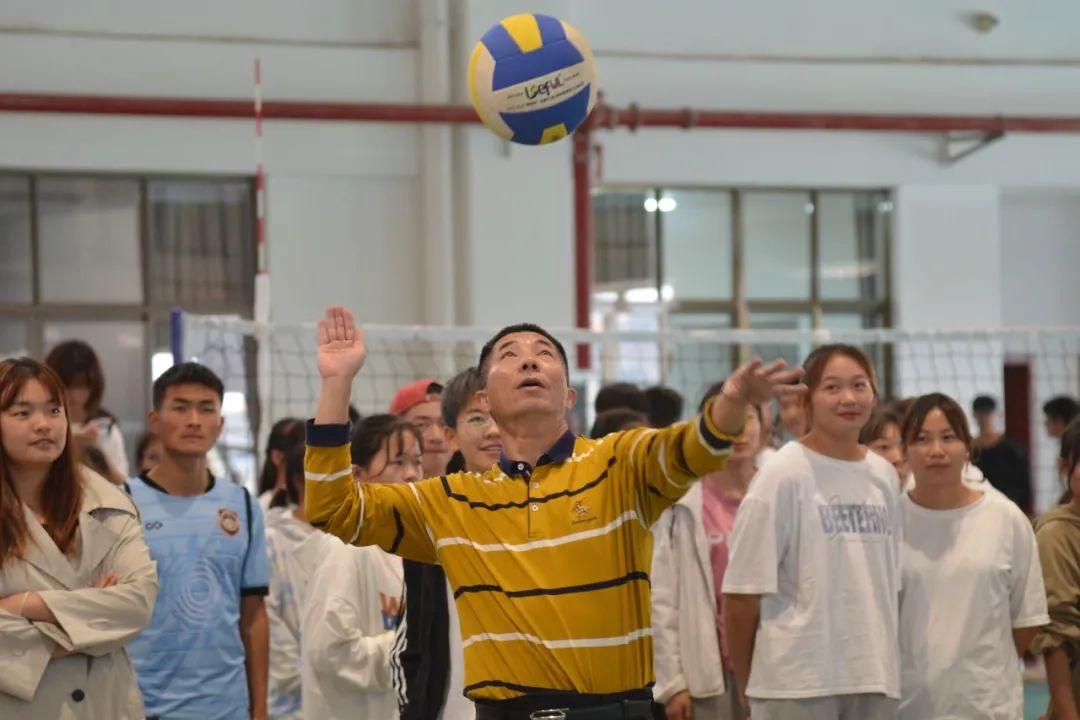 开幕式最后,学校党委书记缪军宣布学校第一届排球、气排球比赛正式开赛,学校领导班子成员为此次比赛开球。