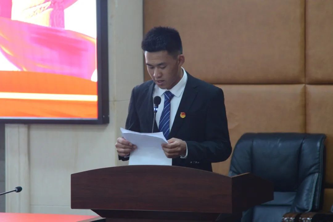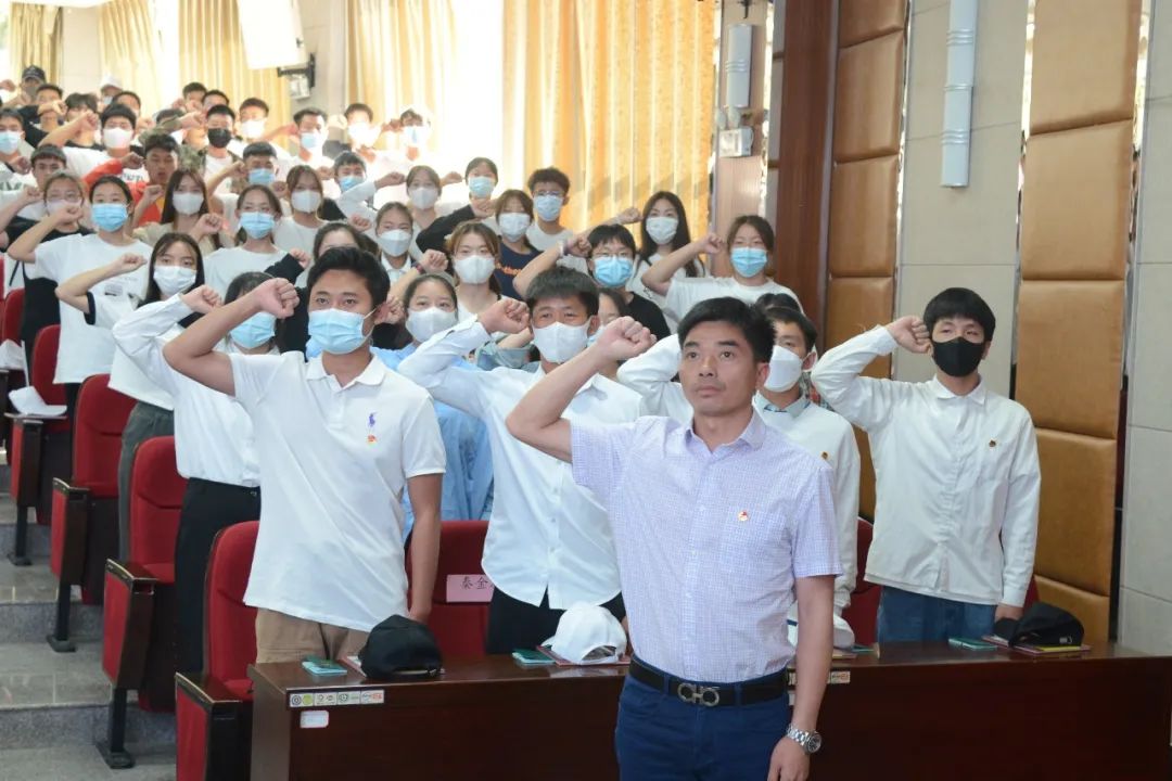 优秀共青团干部代表、新老团员代表分别上台发言。他们表示,身为共青团员,要积极展现青年强国有我的担当,用智慧和汗水奏响青春乐章,团结同学,传承并发扬“五四精神”,不断加强政治理论武装、学好科学文化知识,用实际行动实现入团誓言,用青春擦亮梦想的底色。