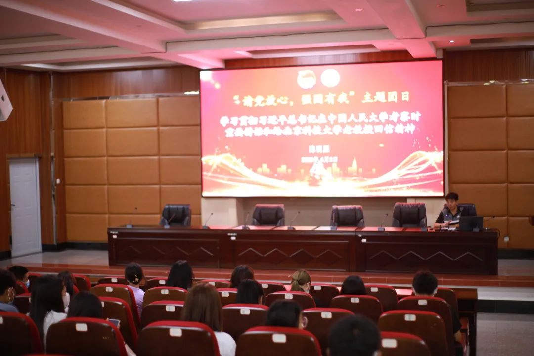 校团委副书记陈明照老师以央视新闻为切入点,从“让党放心,不负人民”“回答时代之题,彰显中国之理”“勇当开路先锋,争当事业闯将”带领我们学习习近平总书记在中国人民大学考察时重要讲话精神和给北京科技大学老教授回信精神。