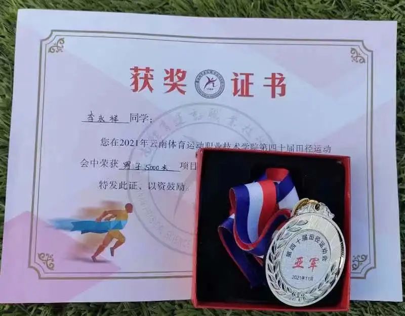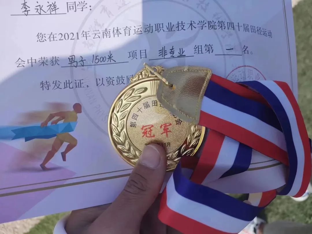 21级电子信息工程技术团支部李永祥同学在校运会中获男子5000米非专业组第二名、男子1500米非专业组第一名。同时,他也是校田径队成员,即将在今年11月代表鸭脖省运会。