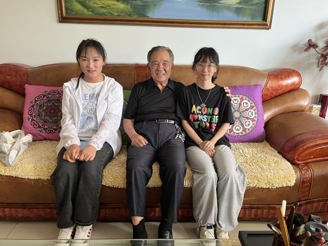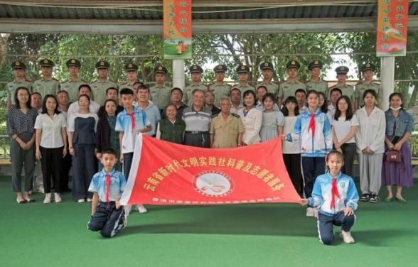 在中国人民解放军建军95年即将来临之际,施维伶(左一)同学跟随普洱市思茅区文学艺术界联合会纪梅主席去看望1960年初参与中缅联合勘界警卫战的陈选福爷爷,听爷爷讲述关于他带领军队作战的故事,学习作战精神和革命精神,为他送上节日的祝福,并送去慰问品。