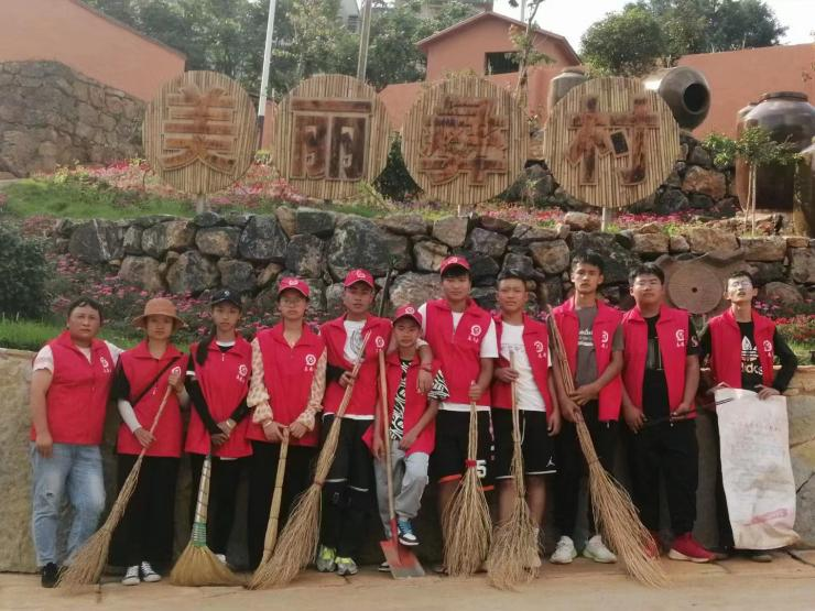 普莉同学(左三)自发组织青少年打扫自村卫生,扎实开展农村人居环境整治和爱国卫生“七个专项”行动,为美丽乡村建设做出了奉献。