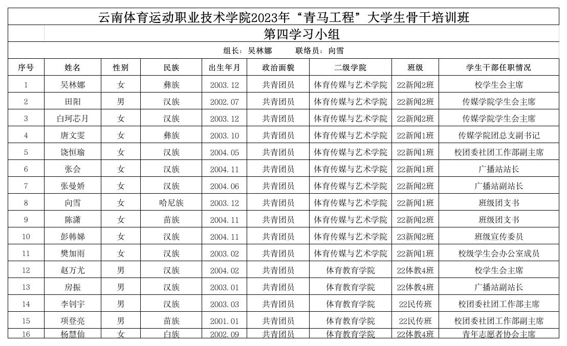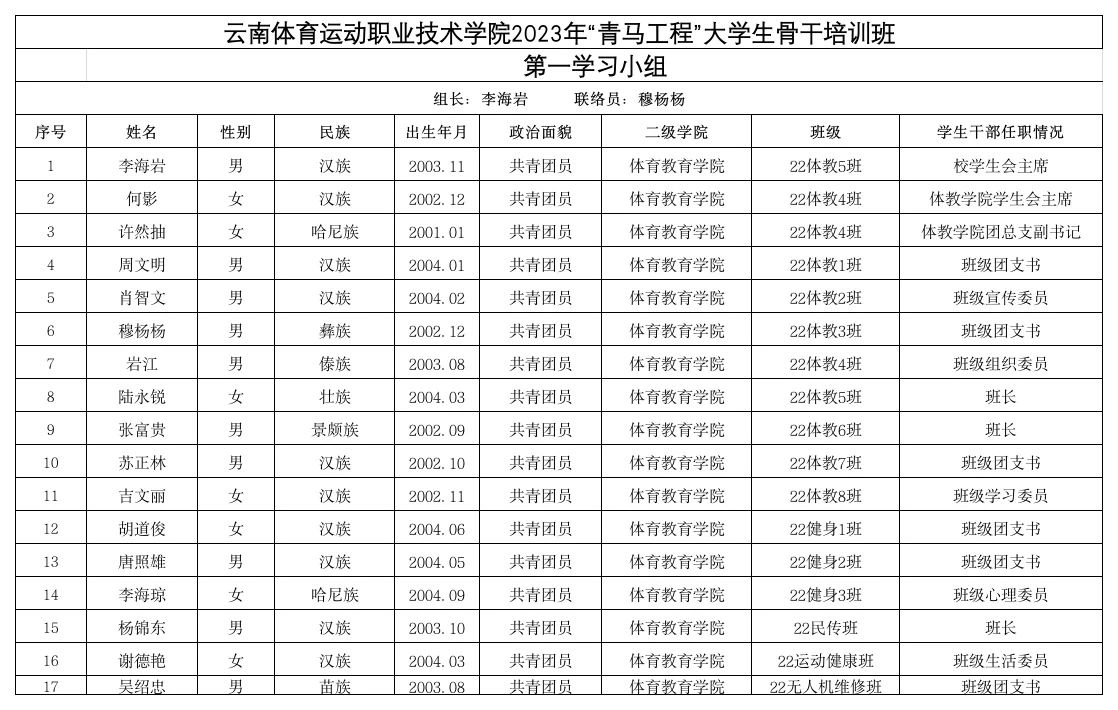 根据《YABO鸭脖官网青年马克思主义者培养工程实施方案》,结合学校实际,目前已完成对2023年YABO鸭脖官网“青马工程”大学生骨干班学员的选拔工作,现将本期学员名单公示如下。