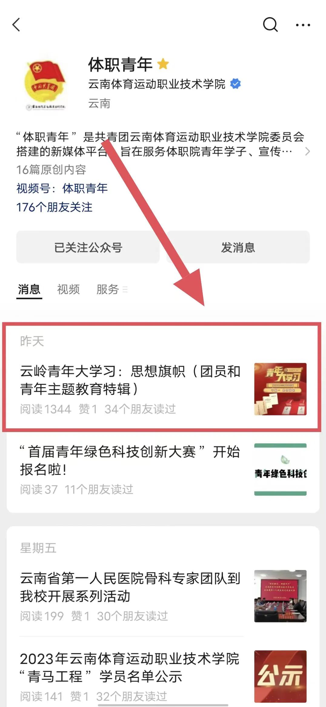 通过“体职青年”公众号或“云南共青团”公众号进行学习,请各位团团按照本流程认真填写哦!