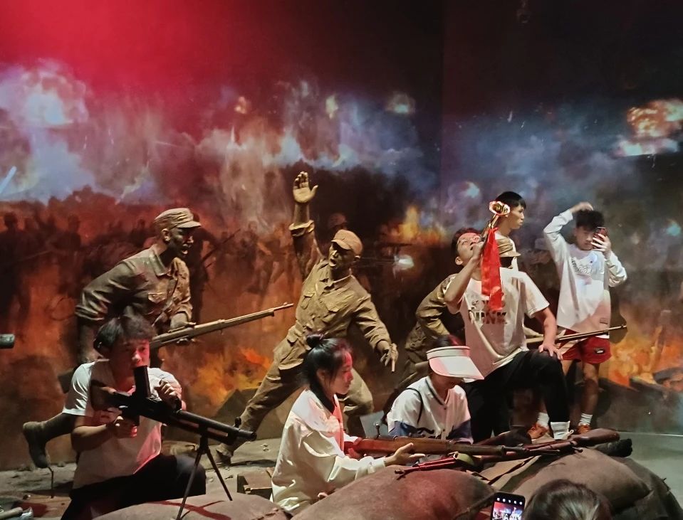 穿过时光隧道,同学们来到了沉浸式体验飞夺泸定桥场景的展馆。在这里同学们体验到了红军革命战士的浴血奋战和飞夺泸定桥的艰难险阻,更领悟到了红军将士英勇顽强、不怕牺牲的革命英雄主义精神。