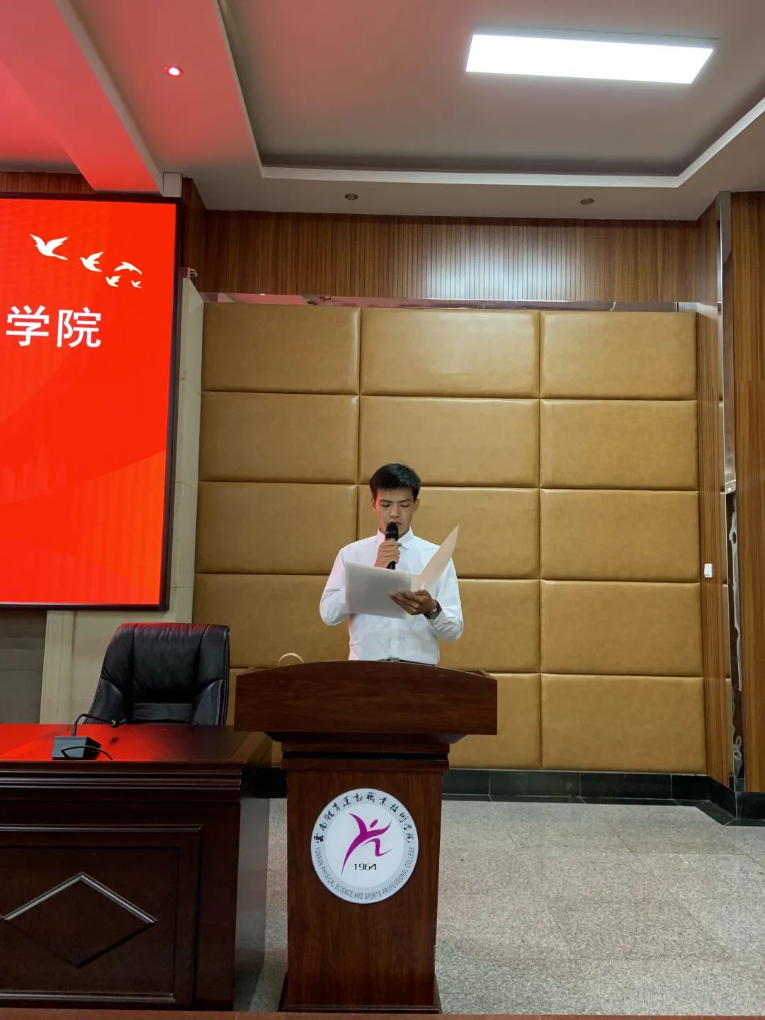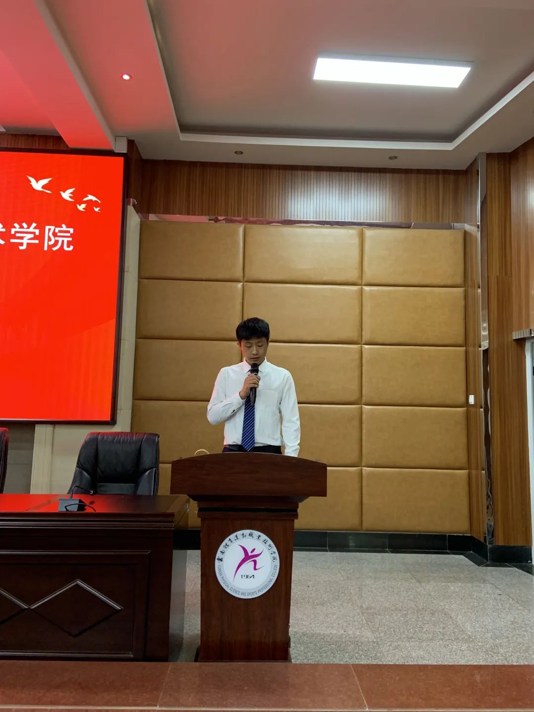 本次述职大会根据《YABO鸭脖官网学生会工作人员述职评议办法》开展,校学生会主席团成员,宣传部、体育部、文艺部、生活部、学习部、办公室部六个部门的19名同学依次上台进行述职演讲。