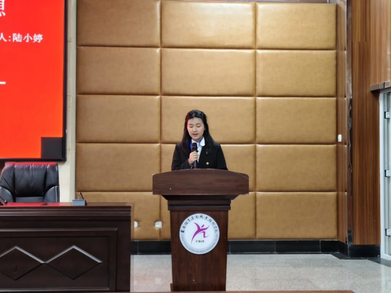 校学生会执行主席陆小婷以“学习两会精神,共筑青春梦想”为主题,分享了对学习全国两会精神的深刻感悟。同时她结合全国两会精神,在今后将积极响应两会号召,从学习、校园文化建设、权益保障和自身建设多方面入手,全心全意为同学服务,为国家富强和民族复兴贡献青春力量,也期待与同学们携手,共筑青春梦想。