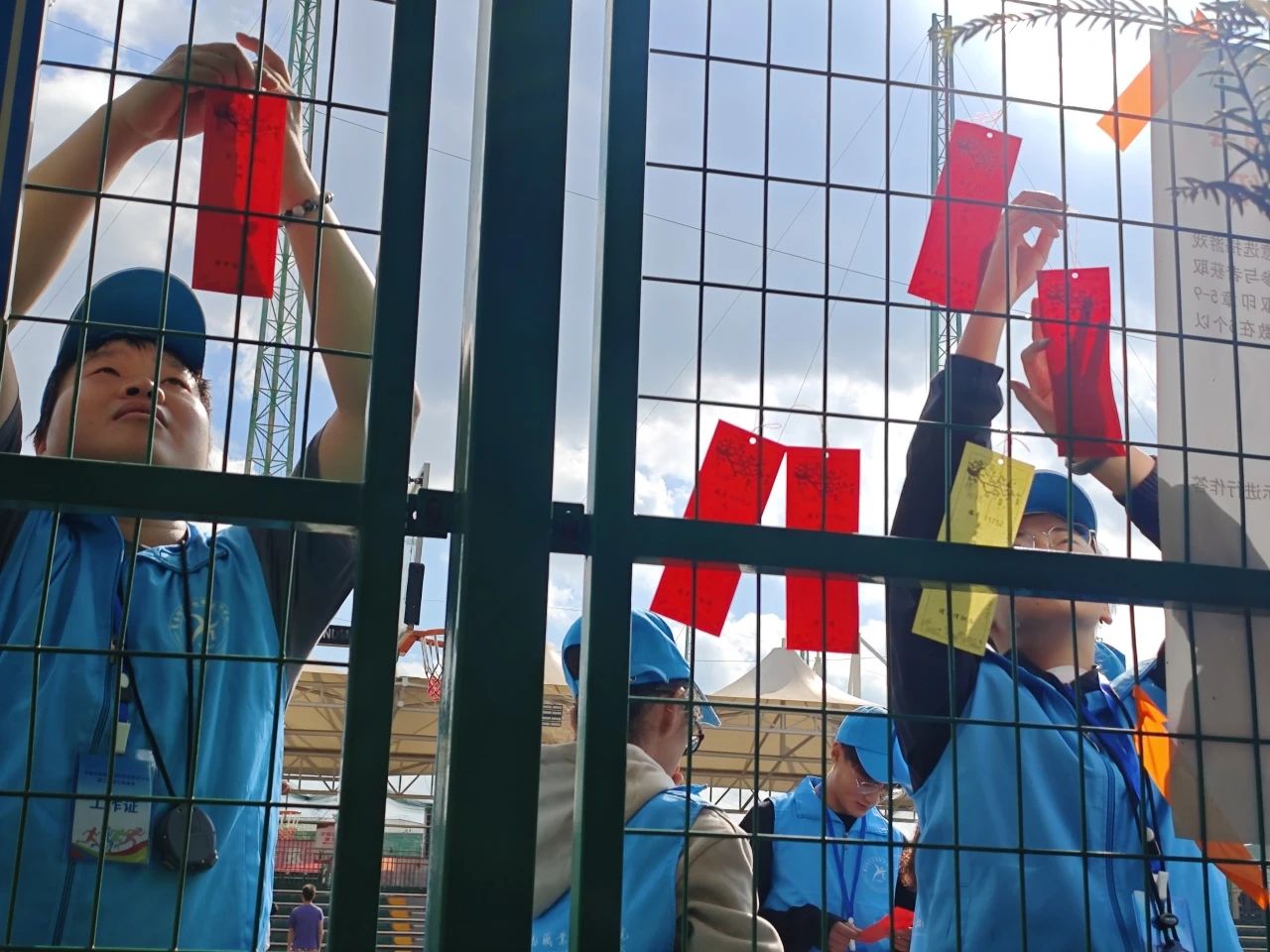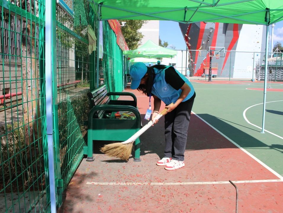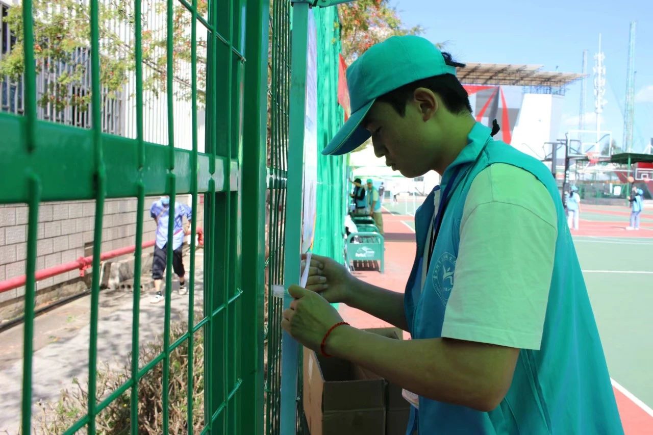运动会开始当天志愿者们早早的就来到了运动场,为比赛的开始做着细致入微的准备工作。他们有的负责场地布置,有的负责器材检查,有的负责接待与引导,一切都井然有序的准备着,志愿者们的身影,也成为了运动场上一道最独特的风景线。