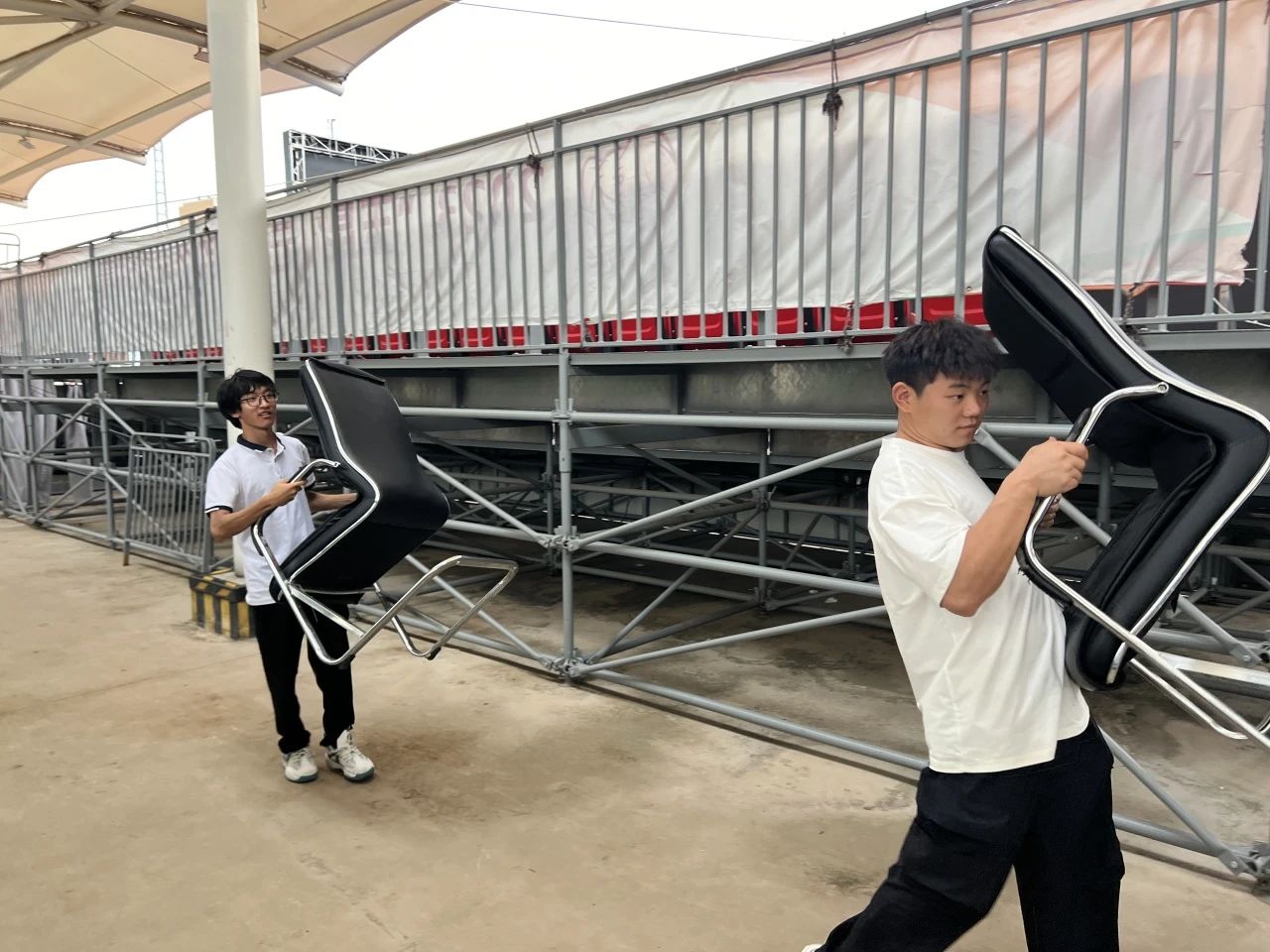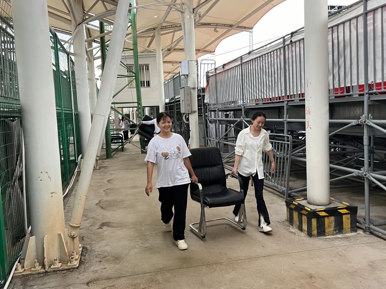 运动会前夕,全体引导员和志愿者们纷纷投入到了紧张的筹备工作中。引导员们身着统一的制服,神采奕奕地参加了彩排,通过反复演练,为开幕式的顺利进行做好了充分的准备,而志愿者们则不辞辛劳地搬运桌椅,将它们精心摆放在各个场馆和田径场的指定位置,为即将到来的开幕式和比赛创造了一个整洁、有序的现场环境。他们的辛勤付出,为运动会的圆满成功奠定了坚实的基础。