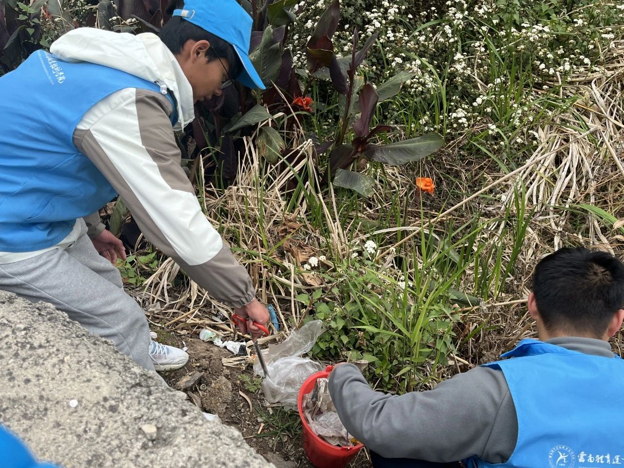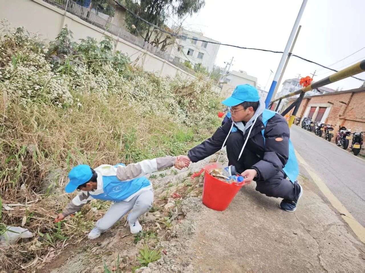活动当天,身着“蓝马甲”的志愿者们手持垃圾袋、火钳等工具。在清理过程中志愿者们分工明确、相互配合,以分片区的形式对河沟、公路边的塑料袋、塑料瓶、纸片等生活垃圾进行地毯式清理,用实际行动践行“奉献、友爱、互助”的志愿服务精神。