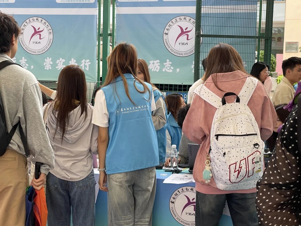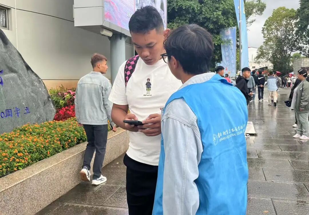 在昆明站、东部汽车站等交通枢纽设立多个固定接站点,志愿者们高举“体职院欢迎你”手牌轮岗值守。