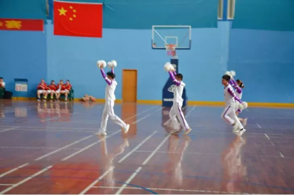 主持人首先介绍两队运动员入场,之后全体人员起立面向国旗唱奏国歌,双方队员握手致敬,我院啦啦操队进场,以一场精彩的加油表演拉开了比赛的帷幕。