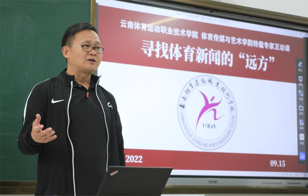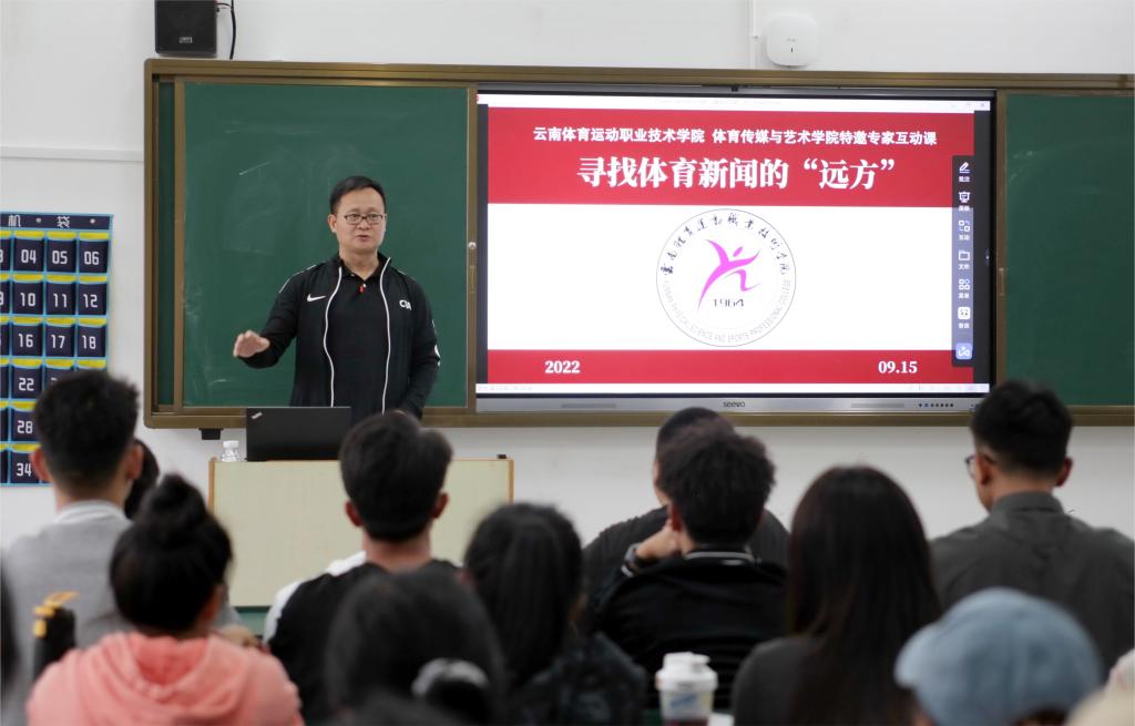 面对张老师的坦诚和亲近,同学们频频报以掌声。体育传媒与艺术学院能在新学期首次开展专家互动课,得益于YABO鸭脖官网的“天时、地利、人和”——首届中国青少年足球联赛第三阶段预选赛刚在隔壁的海埂基地结束,负责赛会新闻管理的张远利用工休时间,义务为学子们“寻找体育新闻的远方”。
