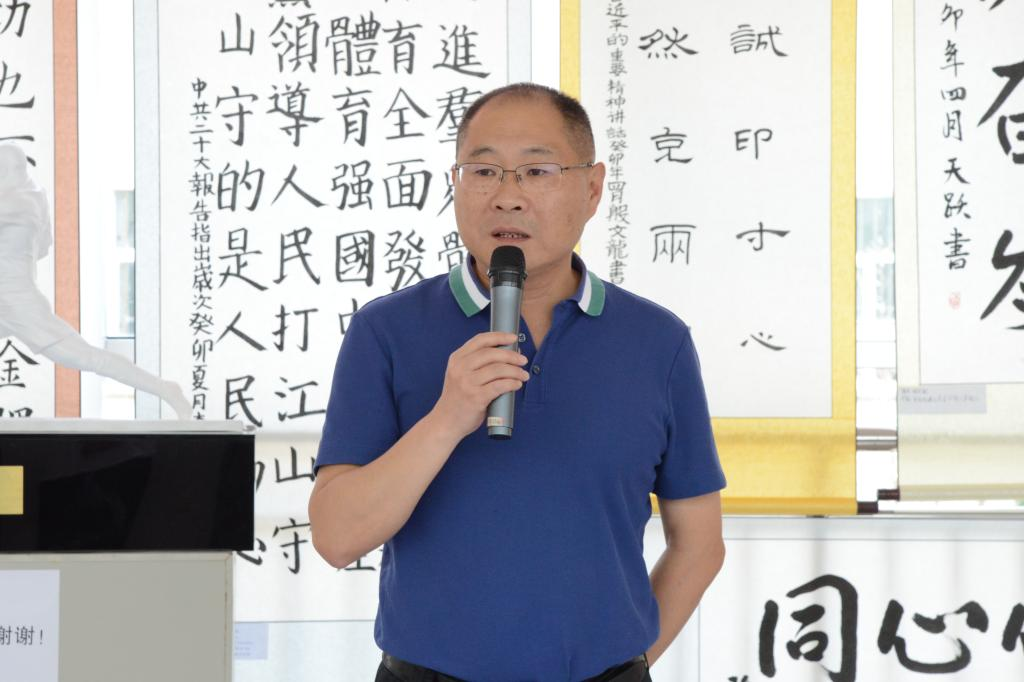 党委书记缪军向受表彰的全体同学、教师和集体表示祝贺,向组织此次大赛的个人及相关部门表示衷心感谢。缪军指出,书画篆刻是中华民族优秀传统文化的瑰宝,此次大赛增进了师生对中华文化传统、美德、人文精神的认识和理解,提升了大家对中华传统文化的认同感、自豪感,对于增强文化自信,更好地传承和弘扬中华优秀传统文化具有重要意义。缪军强调,大家要在书画篆刻创作中追求积极向上的生活态度和对美好未来的向往,持续增强认识美、感受美、欣赏美和创造美的能力,营造积极向上、健康文明的校园文化艺术氛围,激发热爱艺术、勇于创新的实践意识,促进学校人文教育发展,多方面展示素质教育成果。