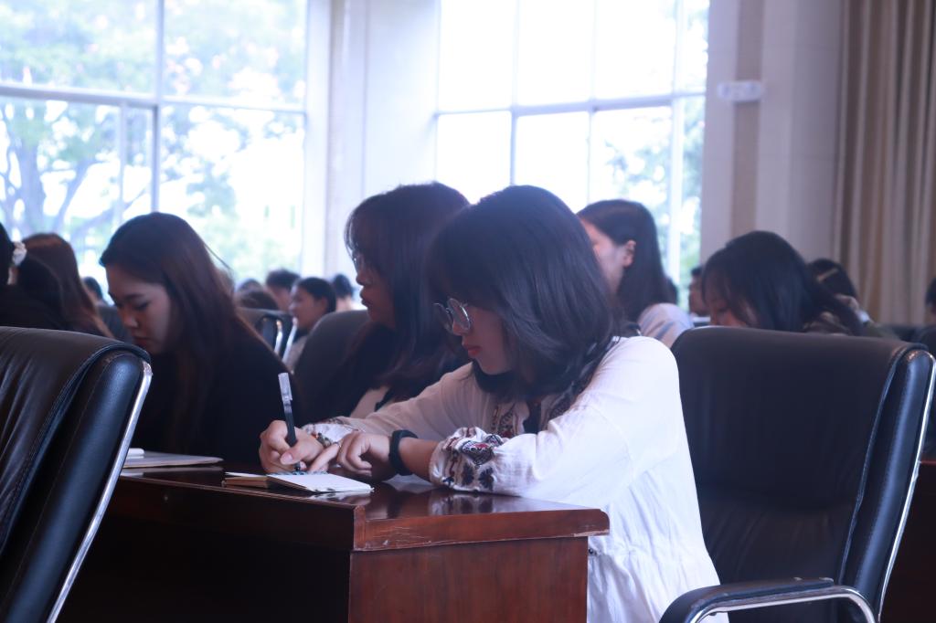 体育传媒与艺术学院辅导员高晨就学生管理、奖助学金、评优评选、学校文化教育活动、青年大讲堂、学生守则等方面工作进行强调和要求。