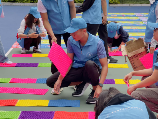 活动前,我院志愿者布置场地、铺设道具,大家分工合作,秉持着“修身励志,崇实尚行”的校训,以饱满的精神状态服务大家,这既展示了云南体职院学子的精气神,也为趣味运动会的开始做好了充足的准备。