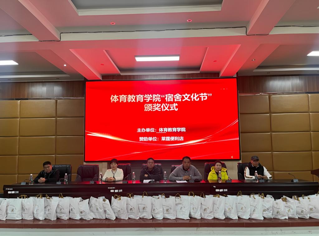 为了表彰先进,树立典型,激励体育教育学院学生积极参与宿舍文化建设,2024年12月26日于第一报告厅举办“2024年体育教育学院宿舍文化节评比”颁奖仪式。体育教育学院党总支书记王延勇老师、体育教育学院院长王井明老师、体育教育学院党总支副书记李娜老师、体育教育学院副院长马璐老师、体育教育学院专职组织员潘泽凯老师出席本次颁奖仪式。