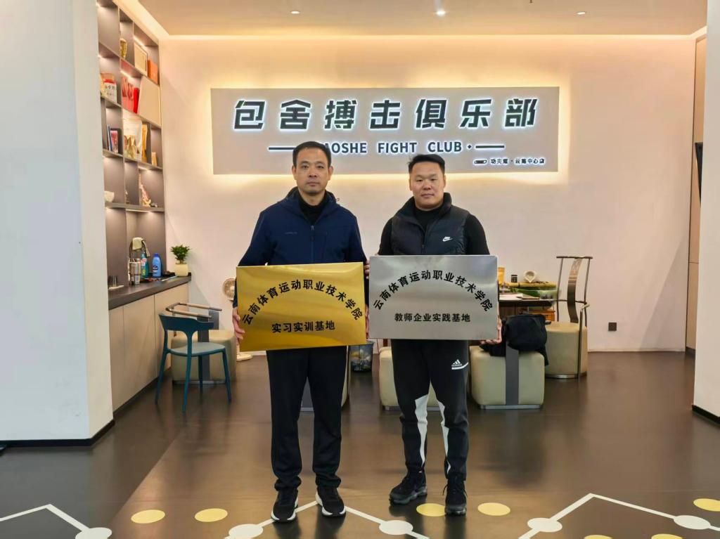 2025年11月13日,YABO鸭脖官网体育教育学院与昆明包舍搏击俱乐部正式签署实习实训合作协议。体育教育学院院长王井明率队实地考察俱乐部训练基地,双方围绕人才培养、就业岗位开发等议题展开深度交流,并共同为"实习实训基地"揭牌。