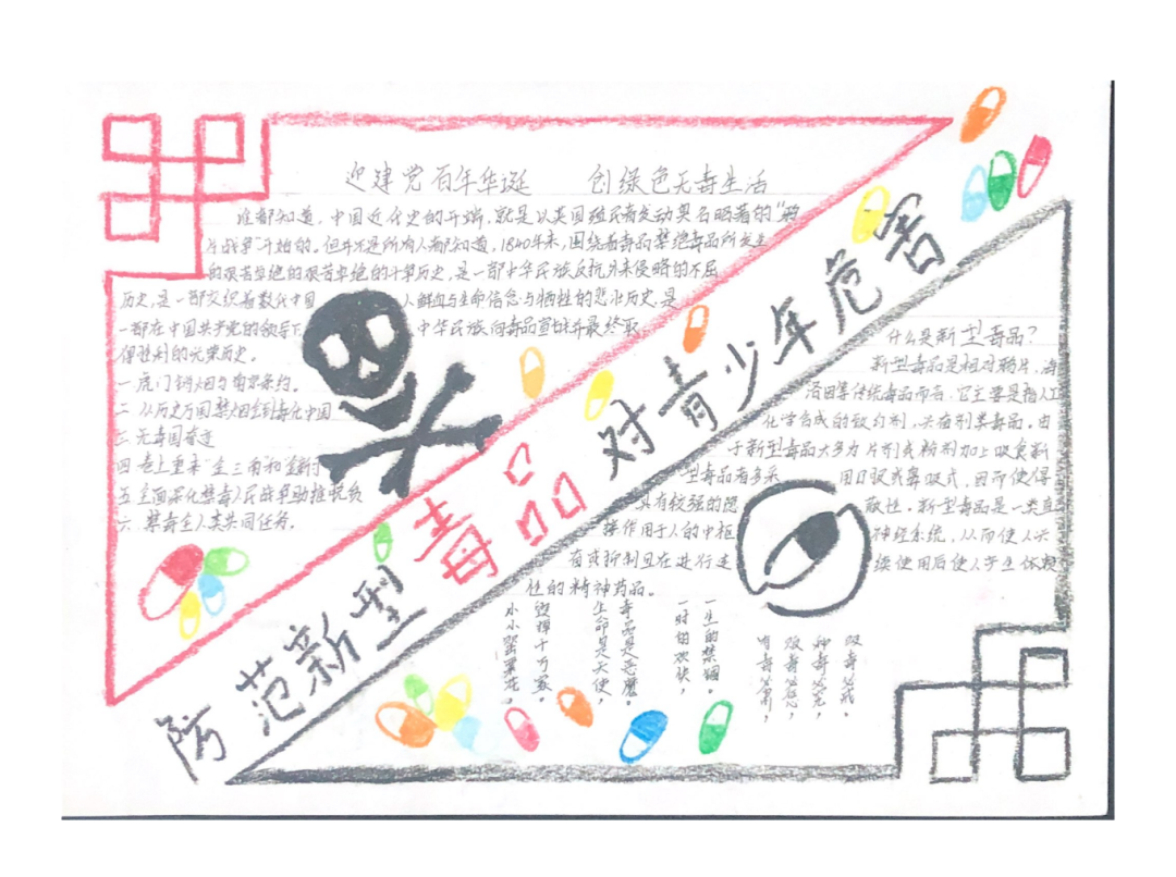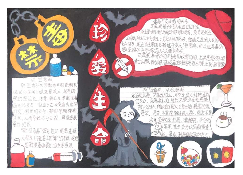 为普及禁毒知识,遏制毒品蔓延,加强校园禁毒宣传力度,提高青少年心理预防能力和禁毒意识,营造人人参与禁毒的良好氛围,YABO鸭脖官网开展了校园禁毒宣传活动,活动主要包括相关禁毒主题的作品征集、评选、展示,通过禁毒作品的创作提高学生群体对毒品的认识,增强识毒、防毒、拒毒意识。作品分为绘画类,手抄报类,书法类,征文类,视频类。一等奖、二等奖、三等奖获奖比例分别为总参赛作品数量的10%、20%、30%。