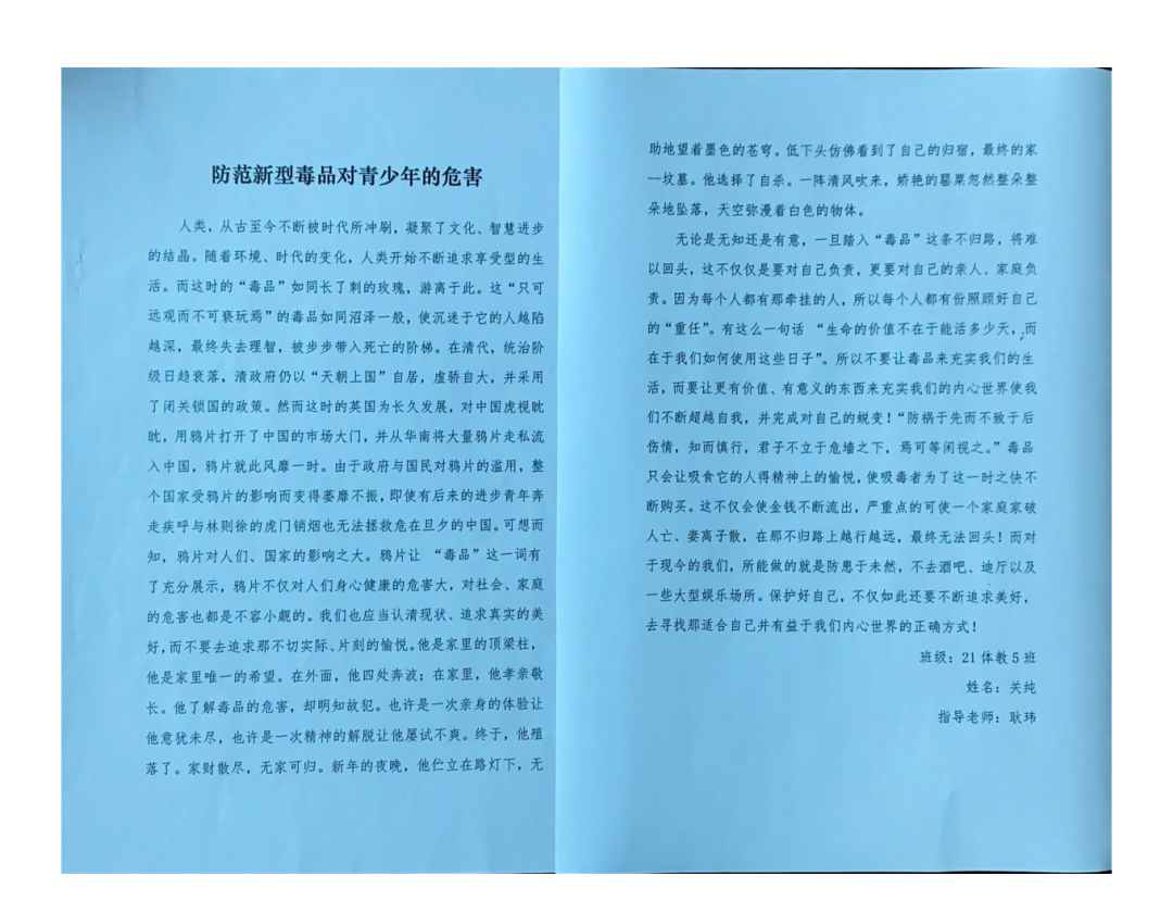 《防范新型毒品对青少年危害》关纯 (21体教5班)
