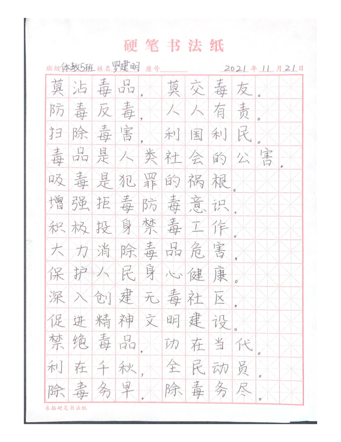 《莫沾毒品》罗建明(21体教5班)