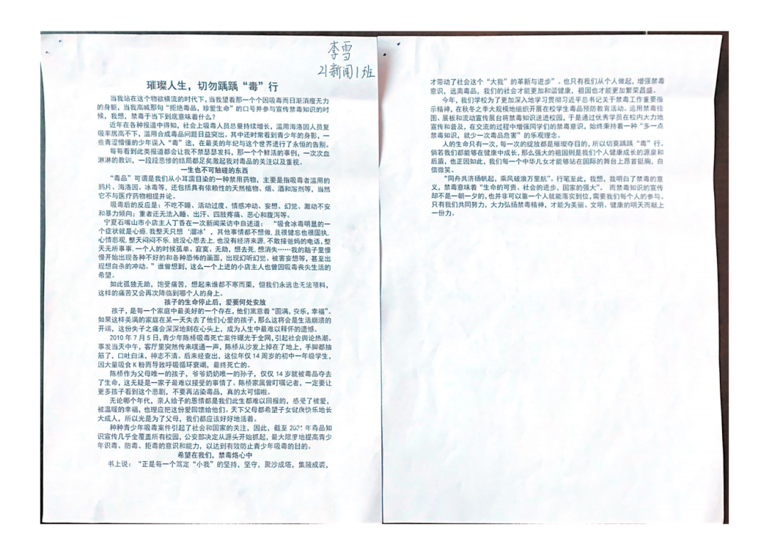 《璀璨人生,切勿踽踽“毒”行》李雪(21新闻1班)