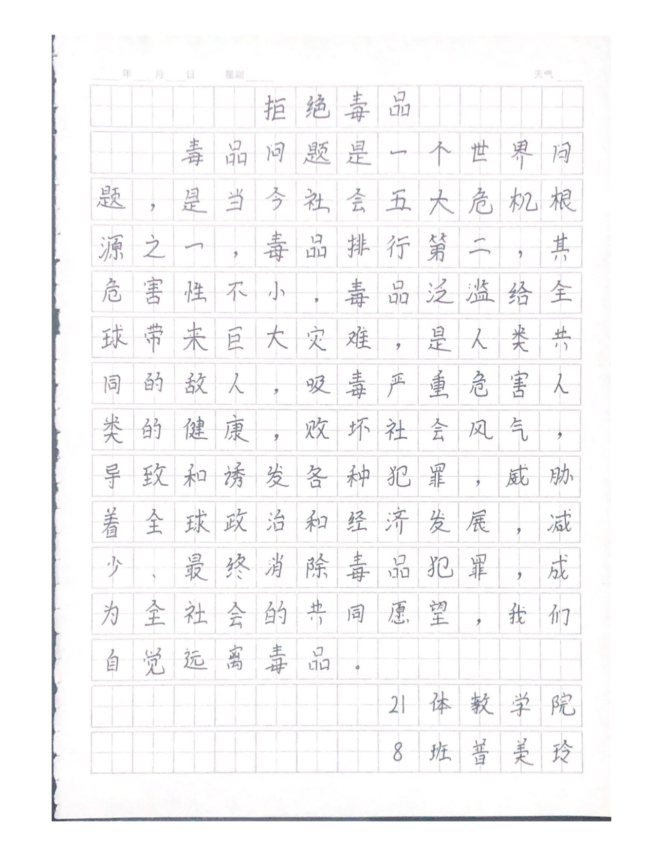 《拒绝毒品》普美玲(21体教8班)
