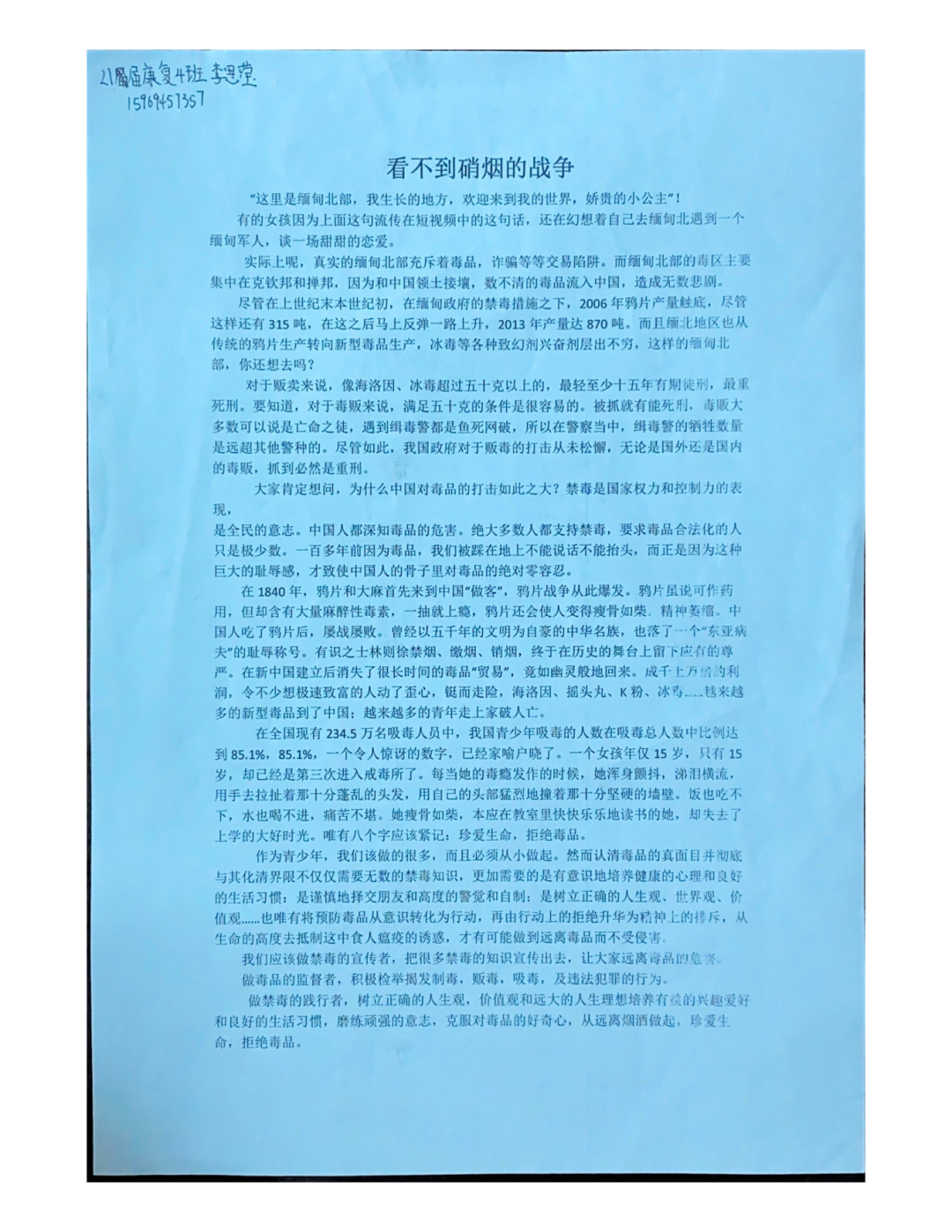 《以青之名义宣传毒品之重》李如意(20康复4班)