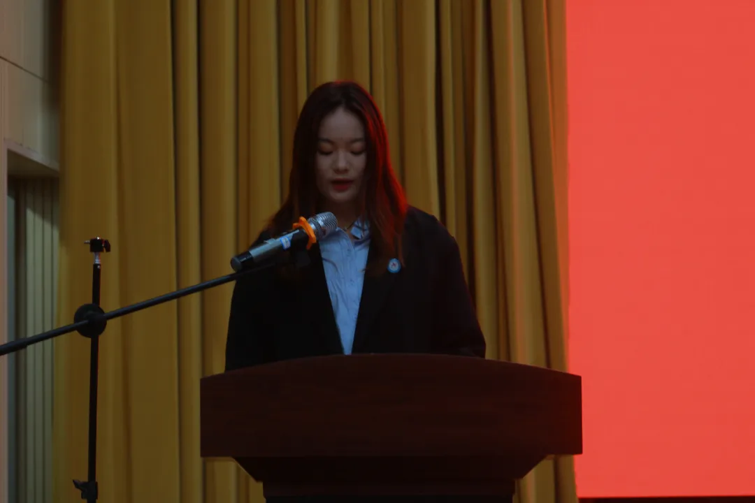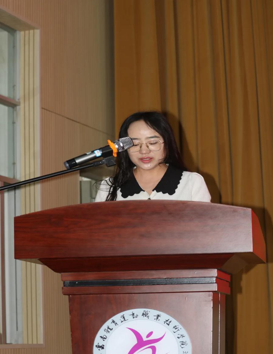 毕业生代表郝婷同学发言。回首了自己三年的青春,立志要到祖国最需要的地方去,成为一个有责任感和使命感的人。
