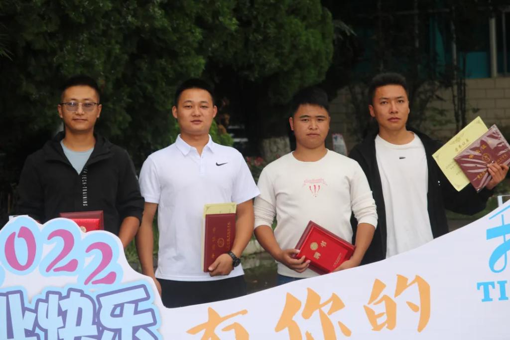 学校领导班子成员为获奖学生代表颁发表彰证书。