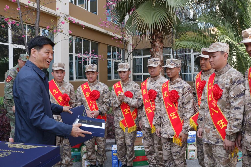 2024年3月15日,鸭脖党委委员、副院长董利民,学校武装部负责同志及相关人员参加西山区2024年上半年新兵入伍欢送仪式,热烈欢送鸭脖学子完成各项考核,即将步入军营。