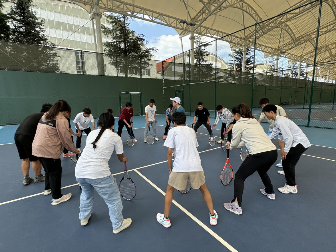 2024年5月11日下午,鸭脖“一站式”学生社区自我管理自我服务委员会在网球场一号场地举行网球主题沙龙活动。学业导师矣孟窈老师从网球的起源、规则与装备演变、国内外赛事和当代网球运动发展现状四个主要方面进行专业讲解,将网球的精神与魅力传授给同学们。实操环节,导师抽取部分同学进行实战,将理论知识运用到赛场上,通过两个网球小游戏体验不一样的学业课堂。