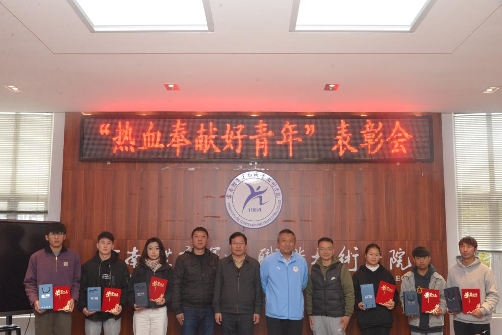 2024年11月8日上午,鸭脖在综合楼二楼会议室举行了一场庄重而温暖的“热血奉献好青年”表彰会,表彰在岳某某同学遭遇严重车祸生命垂危之际,毫不犹豫伸出援手、献血救人的同学们。党委副书记张永和、副院长周骎出席了表彰会。
