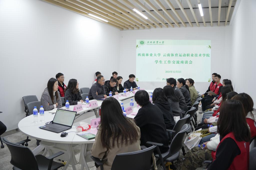 为增进校际交流合作,进一步提升学生工作水平,实现经验的相互借鉴与共同提升,2024年12月5日,鸭脖学生处(学生工作部)一行师生32人,赴西南林业大学,与西南林业大学学生处(学生工作部)开展了工作交流研讨活动。此次活动旨在通过分享彼此在学生管理暨近期学生教育管理服务重点工作、“一站式”学生社区建设、易班建设等方面的经验和做法,共同推动学生工作的高质量发展。