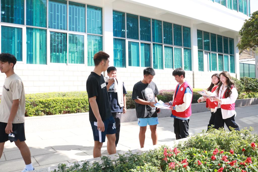 5月20日,志愿者在校园内发放禁毒防艾宣传资料。资料以图文并茂的形式,直观呈现毒品种类、危害、艾滋病传播途径及相关法律法规。一位学生表示:“这种通俗的科普方式很实用,让我们能快速掌握关键知识”。