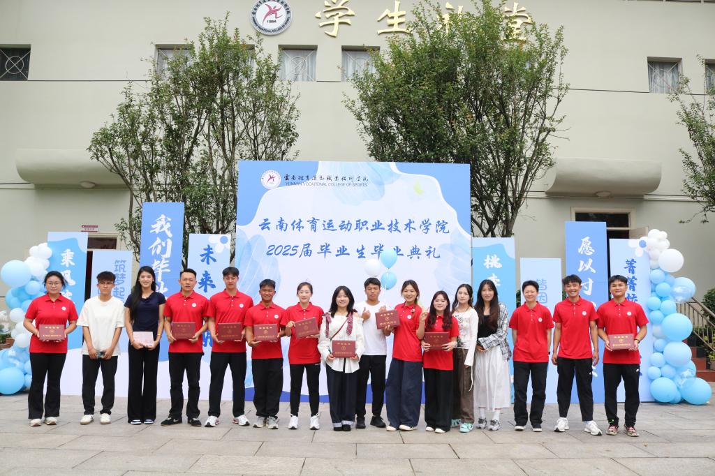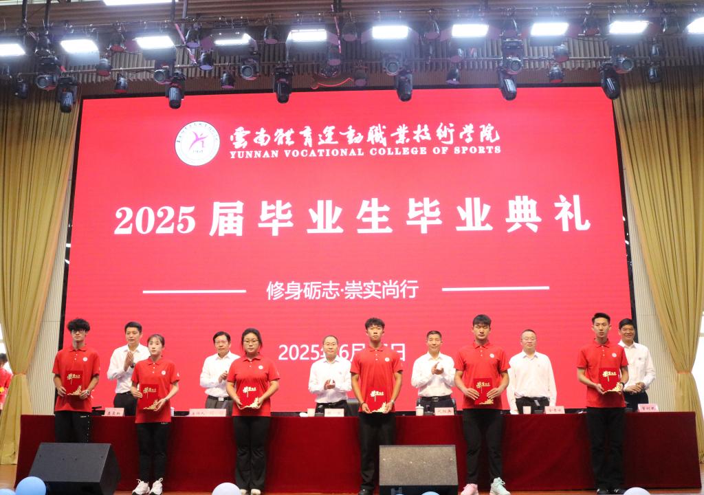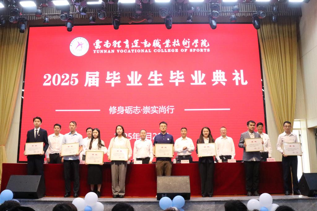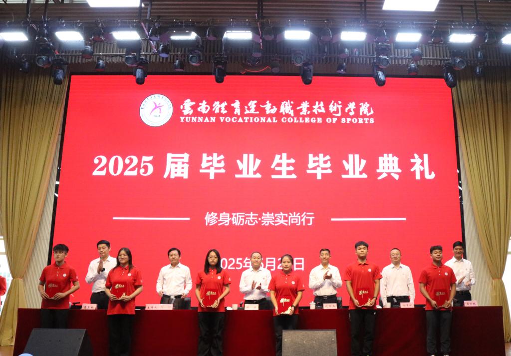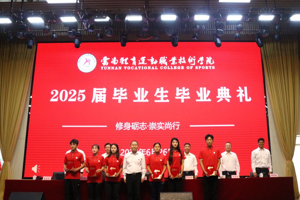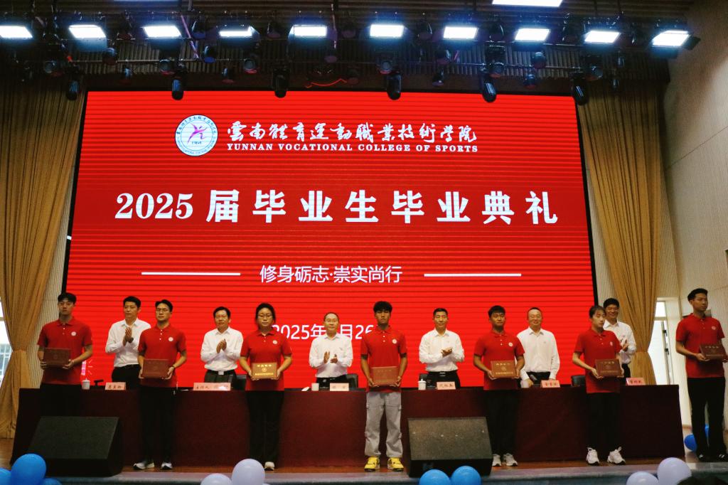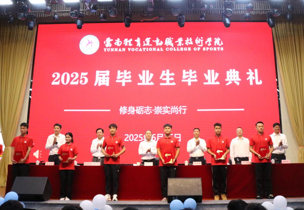 纪委书记金吉斌先后宣读了2025届毕业生体质健康优良等级证书名单、《中共云南省委教育工委云南省教育厅关于公布2024—2025学年省级五好学生优秀学生干部先进班集体及2025届省级优秀毕业生名单的通知》。,对在体质健康和综合素质方面表现优异的学生及集体进行了表彰。