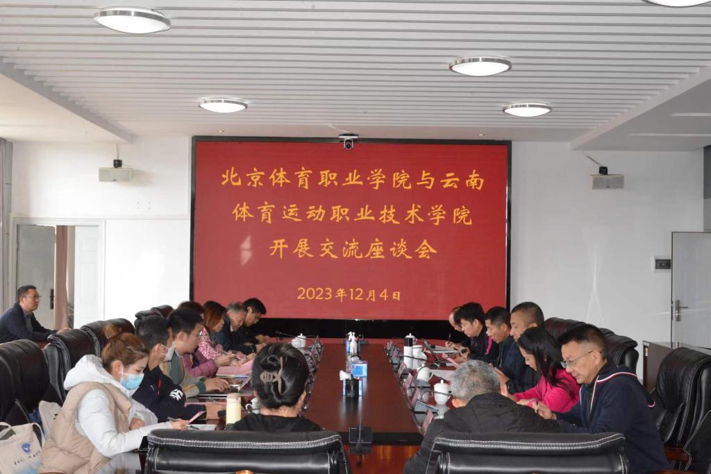 12月4日,北京体育职业学院党委副书记张颖茜、副院长杨阳一行7人到鸭脖调研交流,党委副书记、院长代红兵,党委副书记张永和,副院长聂真新和相关部门负责人陪同调研。座谈会上,代红兵向张颖茜一行的到来表示欢迎,向与会人员介绍了云南体职院的基本情况。他指出,作为云南唯一一所体育类高等院校,云南体职院立足于云南省建设我国面向南亚东南亚的辐射中心,服务国家战略与地方发展,着力推动学校高质量发展,目前学校已有3人...