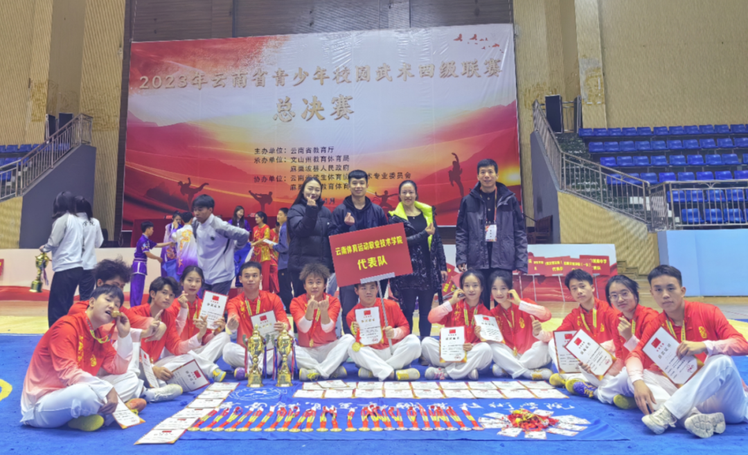 2023年11月23日—26日,由云南省教育厅主办,文山州教育体育局、麻栗坡县人民政府承办,云南省学生体协武术专委会、麻栗坡县教育体育局协办的2023年云南省青少年校园武术四级联赛总决赛在麻栗坡体育馆举行,有来自全省的中小学、高等院校等共计40余支队伍参加本次比赛,参赛人数共计300余人。鸭脖派出校武术套路代表队教练员高丽琼(兼领队)、任典帅,选拔派出8男4女,共计12名同学,参加19个单项1个集体项目的角逐。在比赛中....