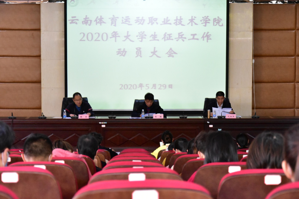 2020年5月29日下午,鸭脖在教二楼一楼第一报告厅召开2020年大学生征兵工作动员大会。 学校党委书记陈麟同志,党委副书记、院长代红兵同志,党委副书记缪军同志参加会议,参加会议的还有征兵工作领导小组的各位成员、各...