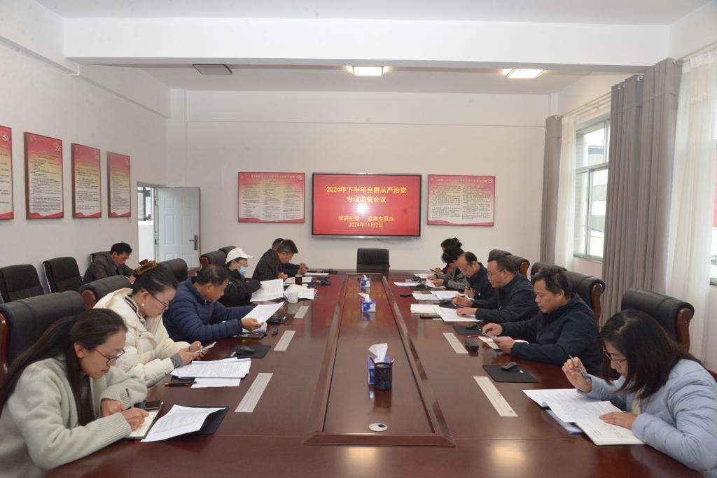 11月7日,学校纪委监察专员办召开2024年下半年全面从严治党专项监督会议,听取各责任部门落实政治监督清单工作情况汇报,对持续深入推进专项监督工作再研究、再部署。学校纪委书记、监察专员金吉斌同志主持会议并讲话。会议指出,政治监督是促进学校各级党组织和广大党员干部自觉同党中央精神对标对表、凝心聚力贯彻落实好上级各项决策部署的重要方式和保证。各责任部门聚焦具体化、精准化、常态化,找准切入点、结合点、着力点...