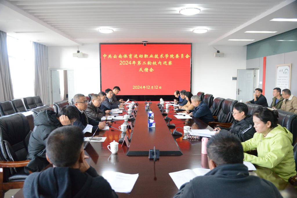 12月12日,学校党委2024年第二轮校内巡察反馈会在云帆楼第一会议室召开。学校党委领导班子全体成员、党委巡察工作领导小组成员、办公室(党委巡察办)相关同志、巡察组成员、被巡察部门教职工参加会议。会议由党委委员、副院长周骎主持。两个巡察组分别向体育教育学院党总支、教务处反馈了巡察发现的问题,并提出整改意见。体育教育学院党总支、教务处主要负责人在会上分别作了表态发言,他们表示,将以高度的政治自觉推动巡察....