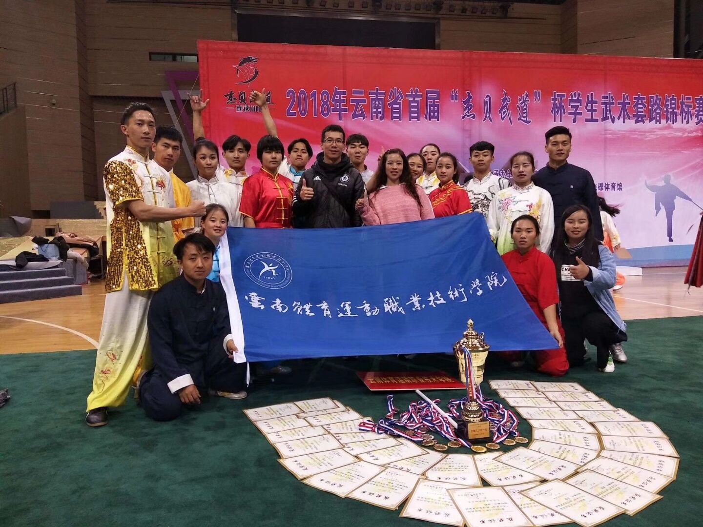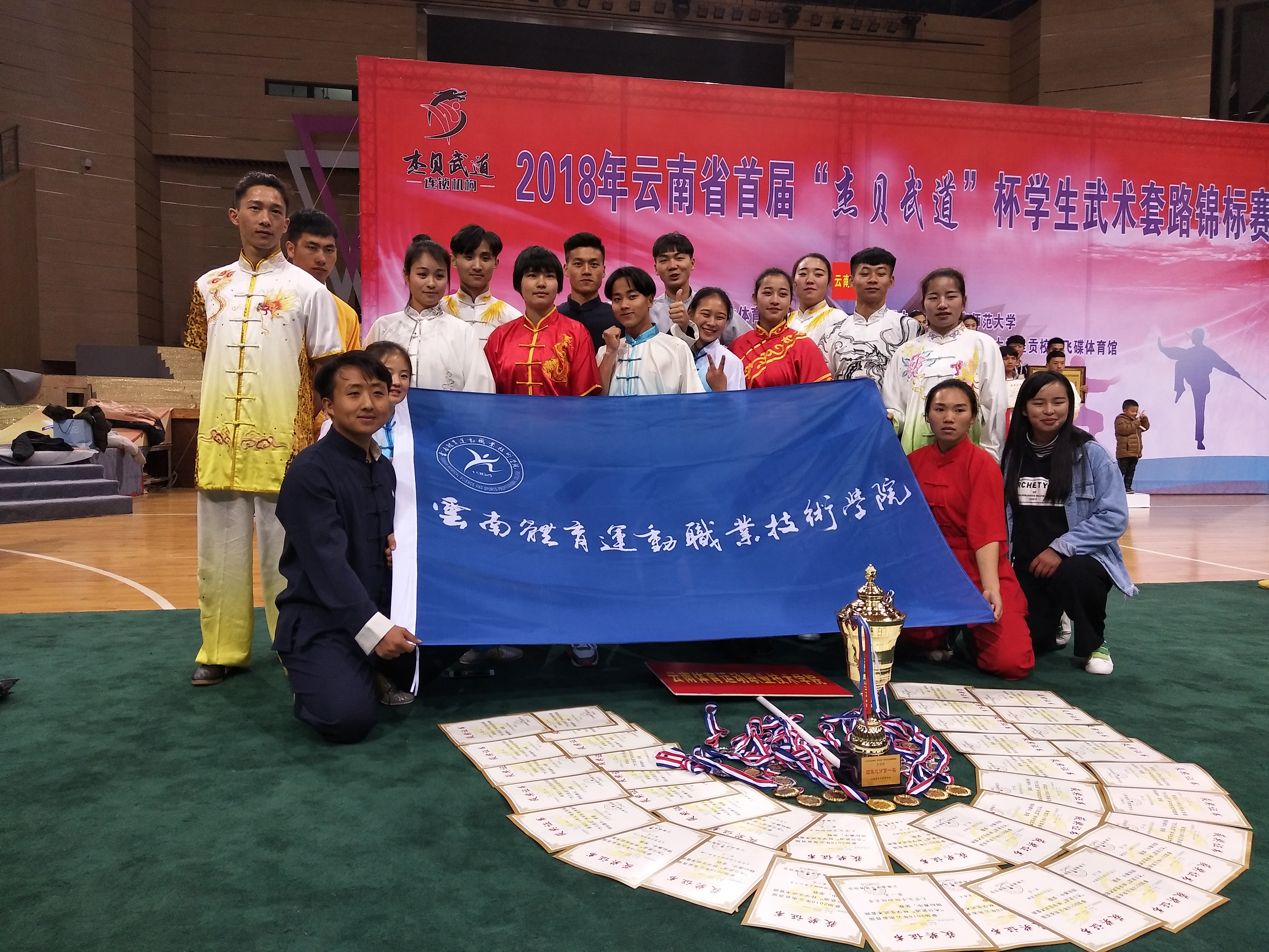2018年云南省首届“杰贝武道”杯学生武术套路锦标赛于2018年12月27日至30日在云南师范大学呈贡校区飞碟体育馆举行。本次比赛吸引来自云南大学、云南民族大学、云南师范大学、玉溪师范学院等十多所高等院校的近两百名...