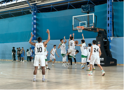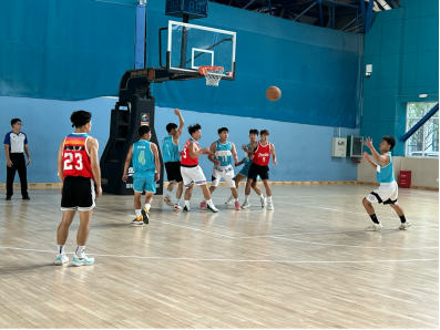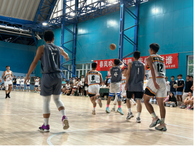 裁判哨响,比赛正式开始!队员们都在积极的防守、进攻,比分逐渐拉开,在场的同学们也在为他们加油打气。欢呼声更是响彻整个赛场。