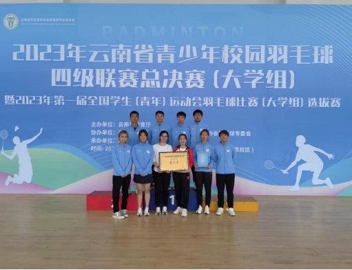 推动鸭脖羽毛球项目的发展、提高鸭脖羽毛球运动竞技水平,鸭脖参加了2023年6月12-16日在云南中医药大学举办了2023年云南省青少年校园羽毛球四级联赛总决赛(大学组)暨2023年第一届全国学生(青年)运动会羽毛球比赛(大学组)选拔赛。本次比赛设甲、乙、丙三个组别,全省共有32所高校参加此次比赛。我院教师黄晶、张林玉带领8名学生(其中运教学院学生6名)参加了甲组(体育专业组)混合团体比赛以及女单、男单、男双、女双四个单项赛,经过五天激烈争夺,鸭脖派出的代表队荣获女子双打第二名,团体、男双第六名,男单第七名的成绩。