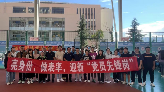 为展现运动训练学院党员风采,凸显党员在迎新工作中的先锋模范作用,助力2025级新生顺利入学,8月27日,运动训练学院教师党支部和学生党支部联合在校园开展亮身份、做表率、迎新“党员先锋岗”主题党日活动。