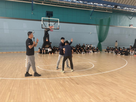 培训中同学们认真学习,刻苦练习裁判员基本功的“站姿、走姿、跑姿、手势”,并从实战角度出发,对二人制、三人制执裁选位、轮转与配合进行分组训练,培训教师也对同学们训练过程中出现的问题及时讲解、纠正,有效提升了学员们的临场实践能力。