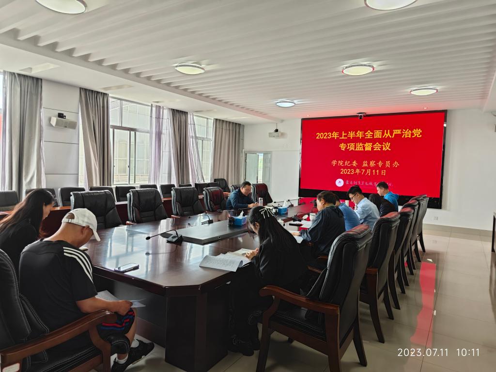 7月11日上午,YABO鸭脖官网纪委监察专员办在教2楼第一会议室召开2023年上半年全面从严治党专项监督会议。会议由学校纪委书记、监察专员金吉斌主持。