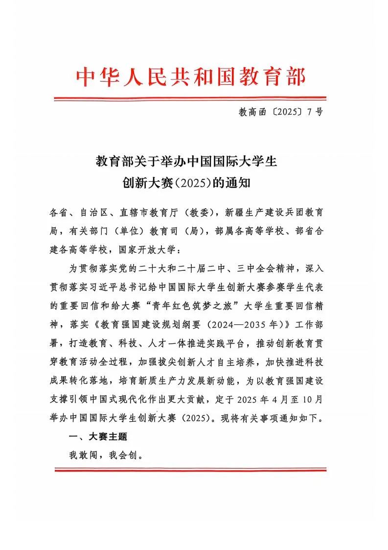 教育部关于举办中国国际大学生创新大赛(2025)的通知