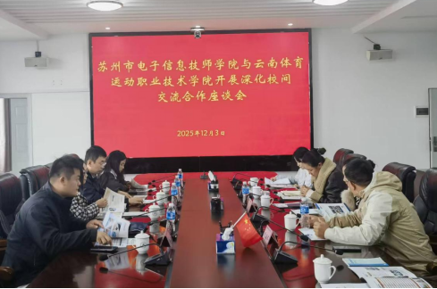 会上,与会人员观看了鸭脖宣传片,了解了学校办学历史沿革。董利民副校长对齐晓楠处长一行的到来表示欢迎。相关部门负责人介绍了学校近年来在体育赛事、人才培养等方面取得的成果。鸭脖顺应国家对职业教育发展的需求,立足云南高原体教特色,积极对接大健康产业及“低空经济”需求,正源源不断向国家、社会输送应用型体育人才及健康人才,专业成果丰厚,与苏州市电子信息技师学院志同道合,希望双方加强交流合作。
