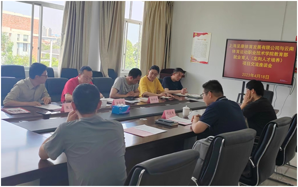 为落实党中央国务院“稳就业”“促就业”决策部署,深化产教融合,校企合作,推动人才培养与就业有机联动,学院于 2023年4月18日下午3时,在学院第二会议室召开教育部就业育人项目(定向人才培养)交流座谈会。就业育人(定向人才培养)项目负责人金吉斌、上海呈康体育发展有限公司代表倪文越出席会议,招生就业处负责人张立国、项目小组成员王井明、高鹏、黄志力参加会议。